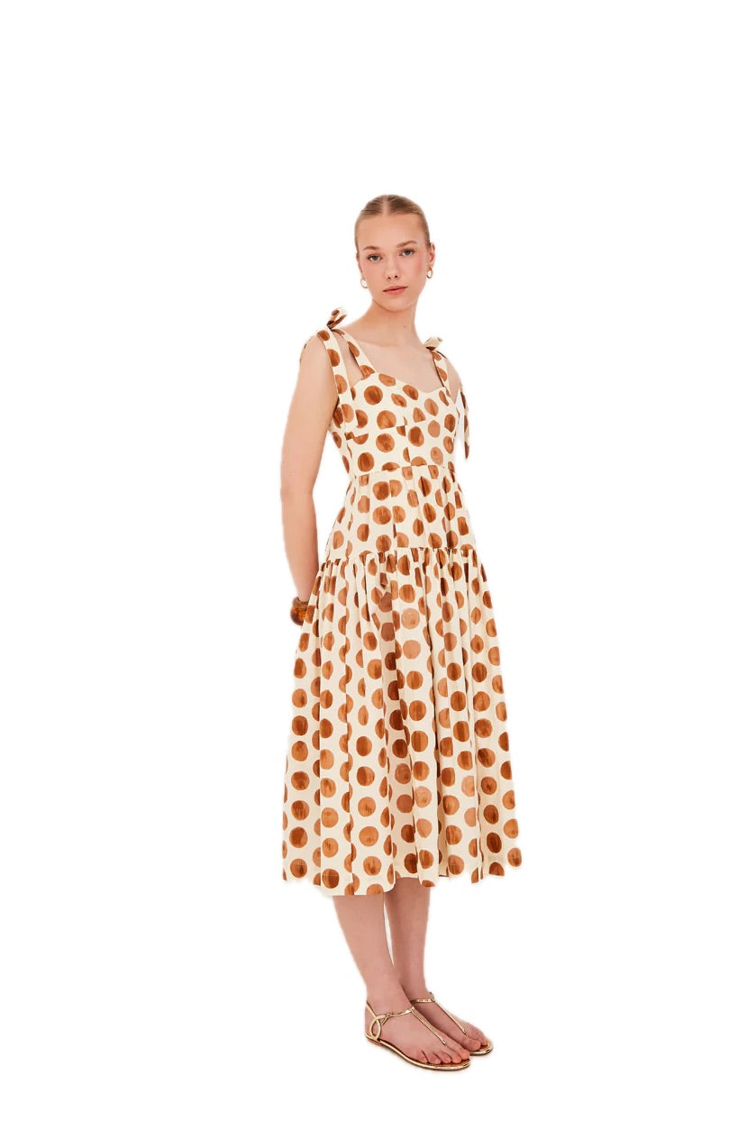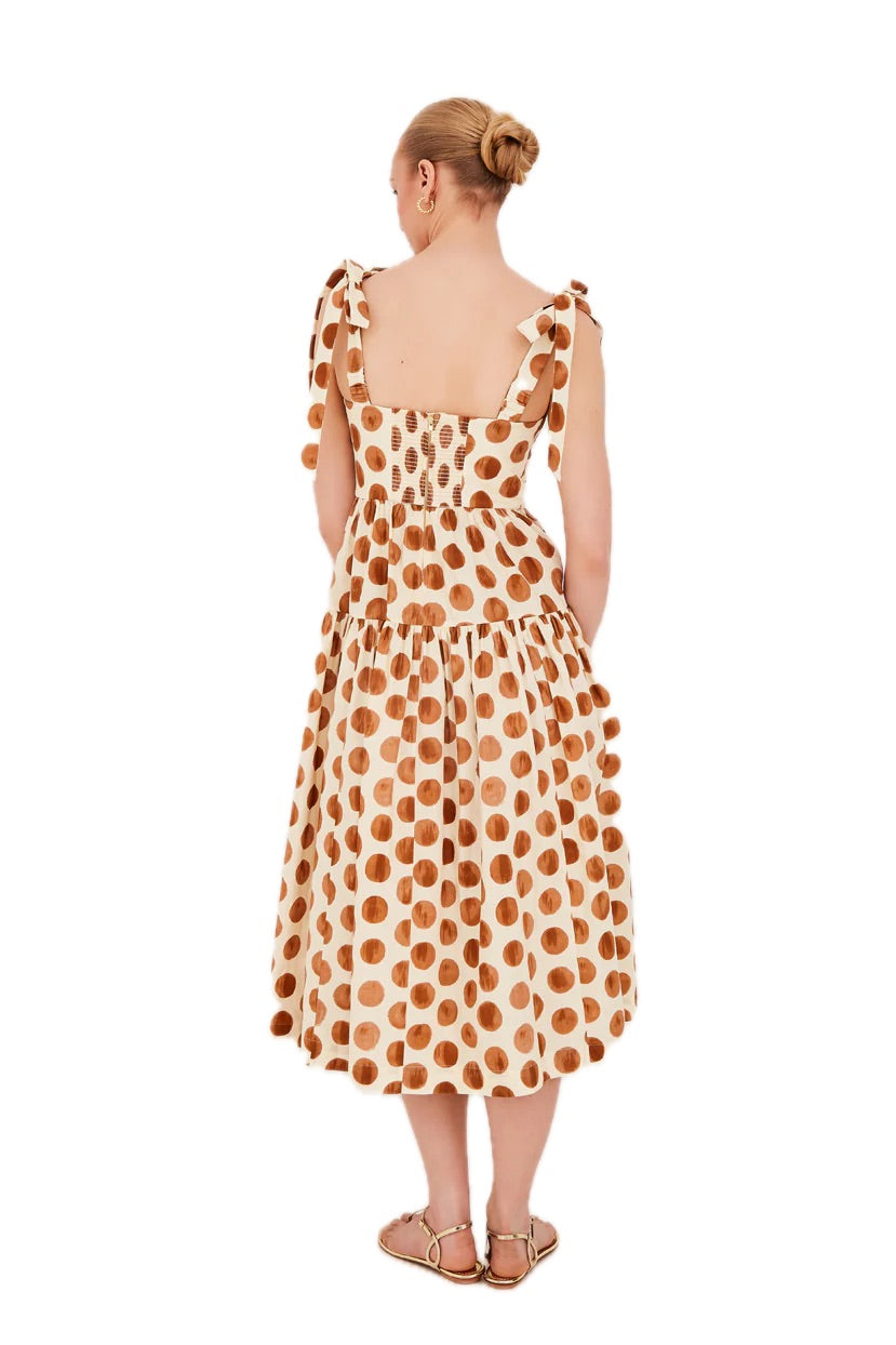 Playful yet polished, the Faiza Dress in Celeste Spot Ginger features a flattering, feminine silhouette brought to life with Cara Cara’s signature spot print and thoughtful tailoring. Designed to define the waist and flow with ease, it’s the perfect statement piece for sunny soirées, vacation dinners, and effortless warm-weather elegance.