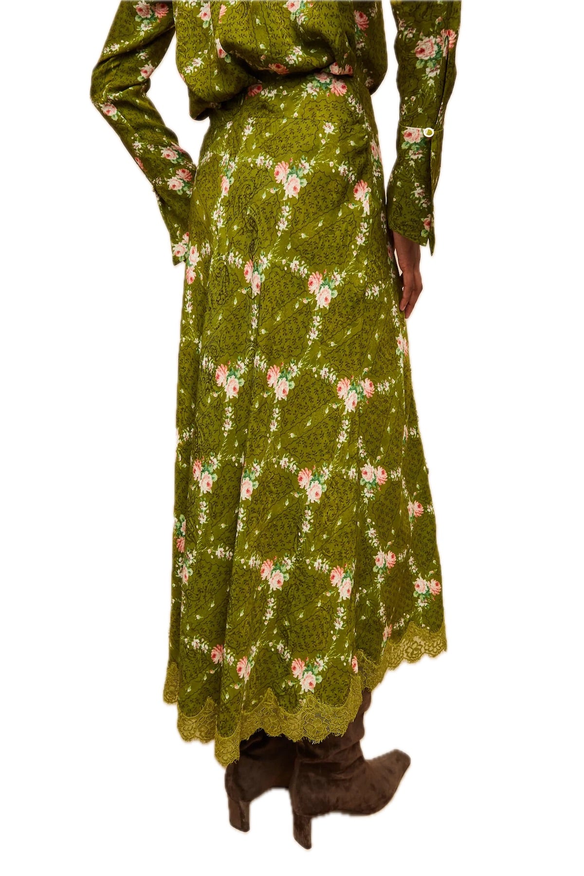 The Lou Skirt is a romantic high-low midi with a modern twist. Featuring lace inserts, a side slit with lace appliqué, and a clean waist with back yoke, it flatters with ease. Finished with an allover print and back zip closure, this unlined skirt moves effortlessly from day to night. Pairs perfectly with the Sundance Top.