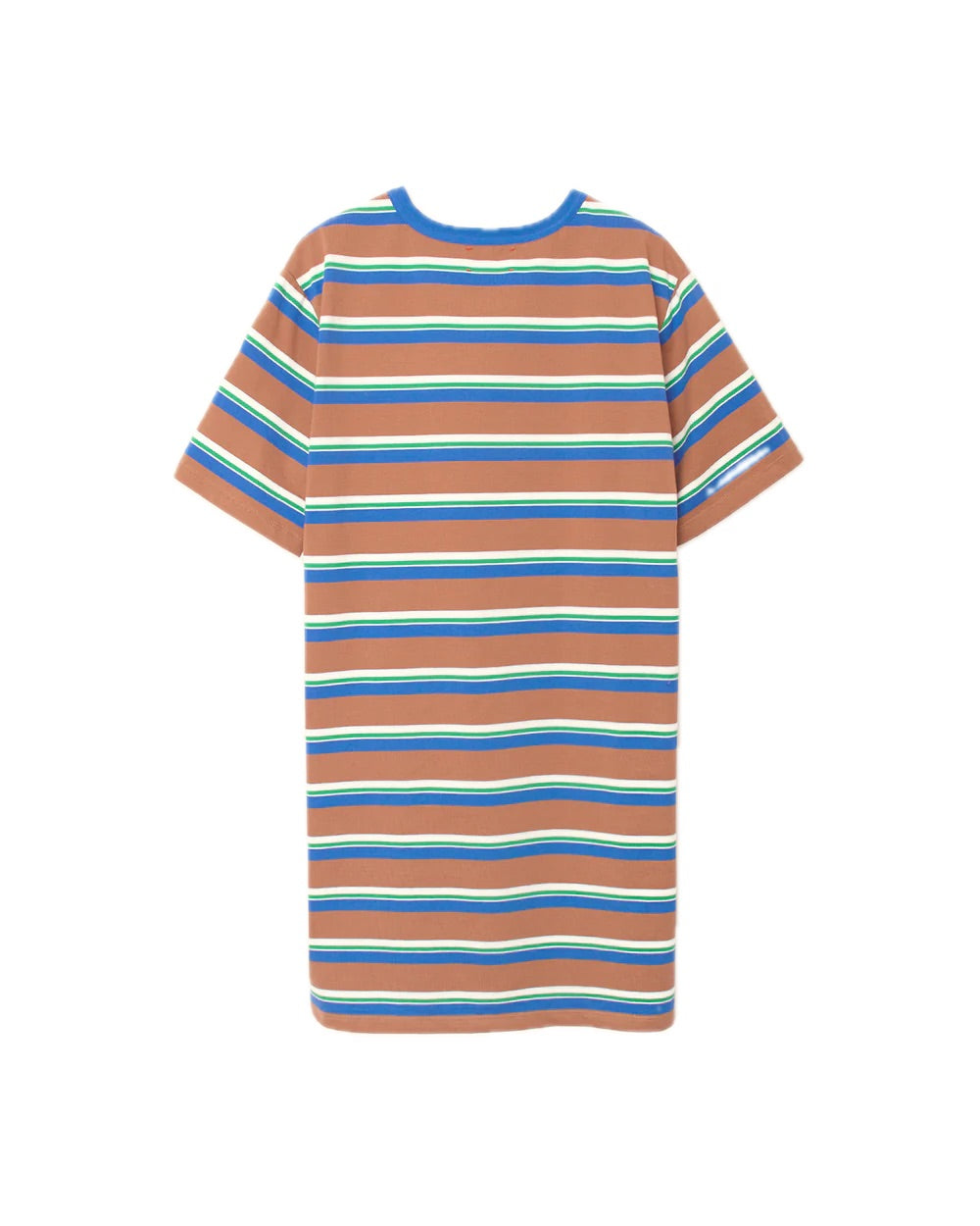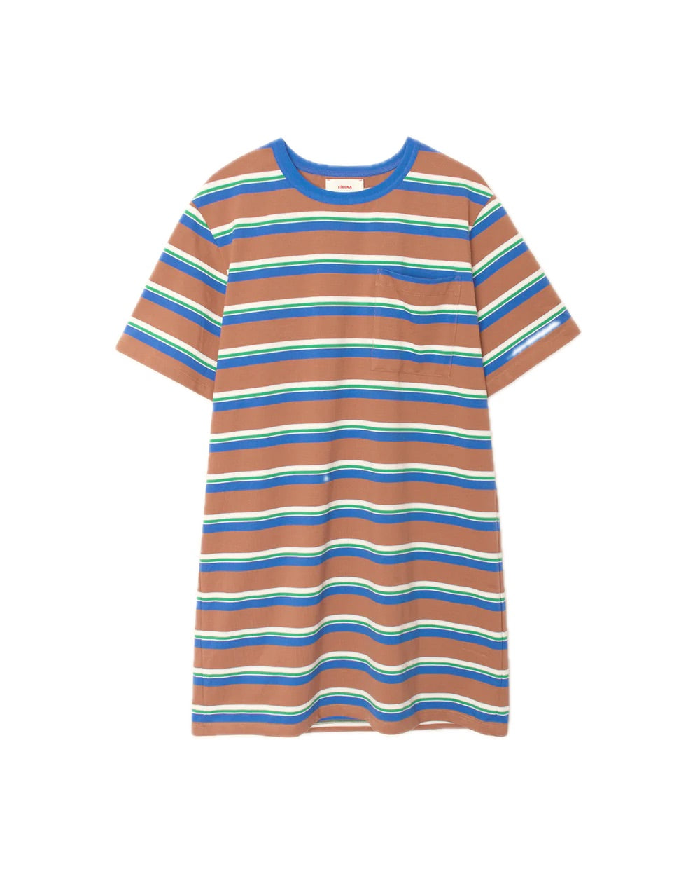 Back to Basics. Justine is in an ultra-soft striped cotton jersey. Justine has a left chest pocket and contrast ringer neck.