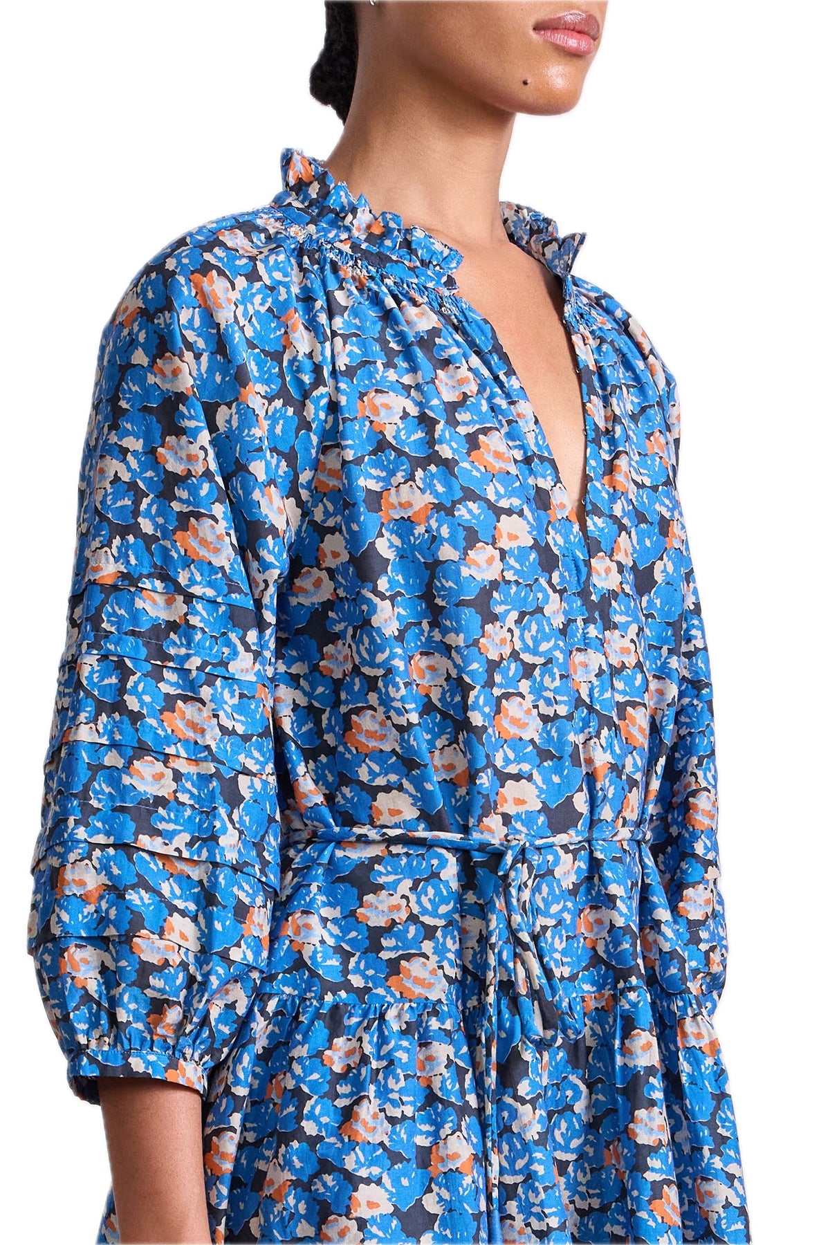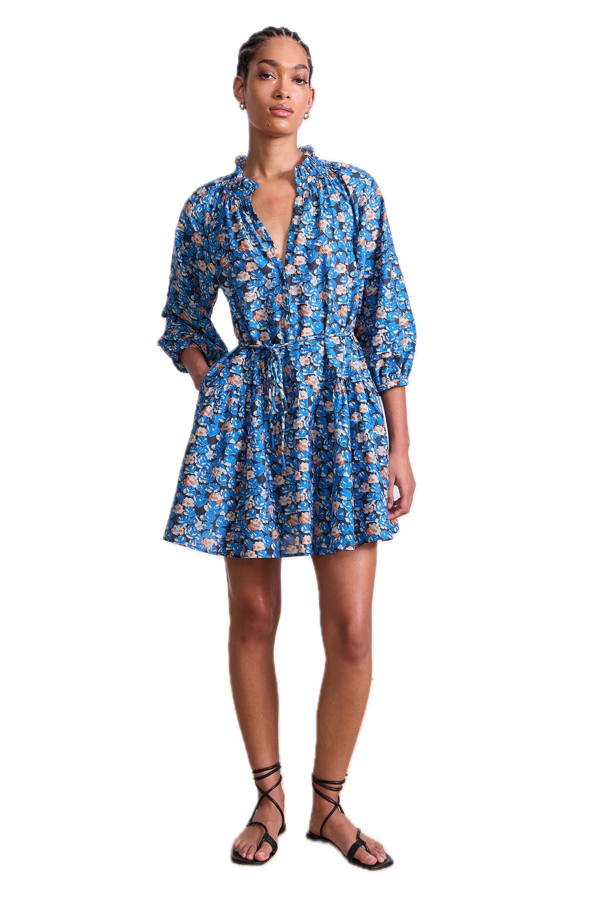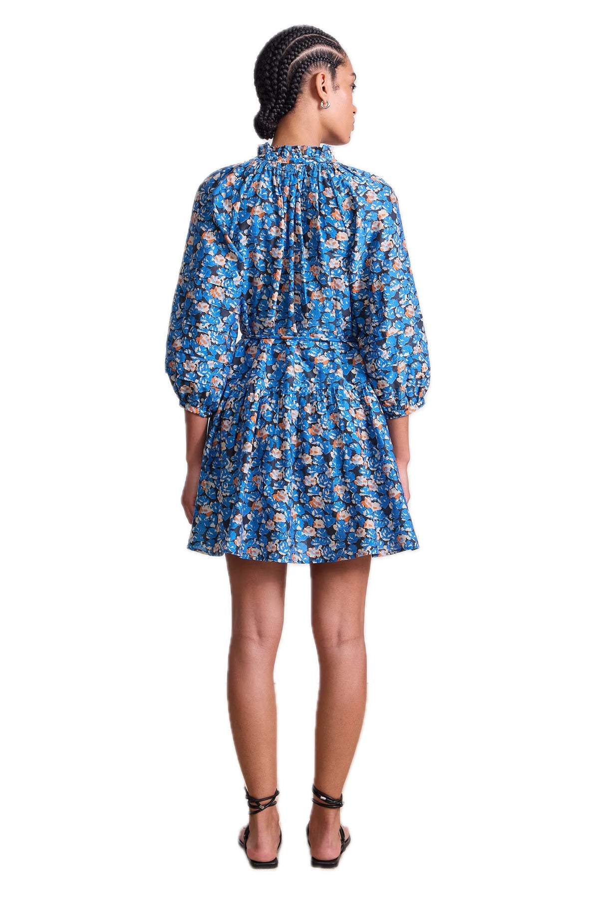The mini version of a staple maxi silhouette, complete with its signature full skirt, neck ruffle and subtle pleat detailing on the sleeve