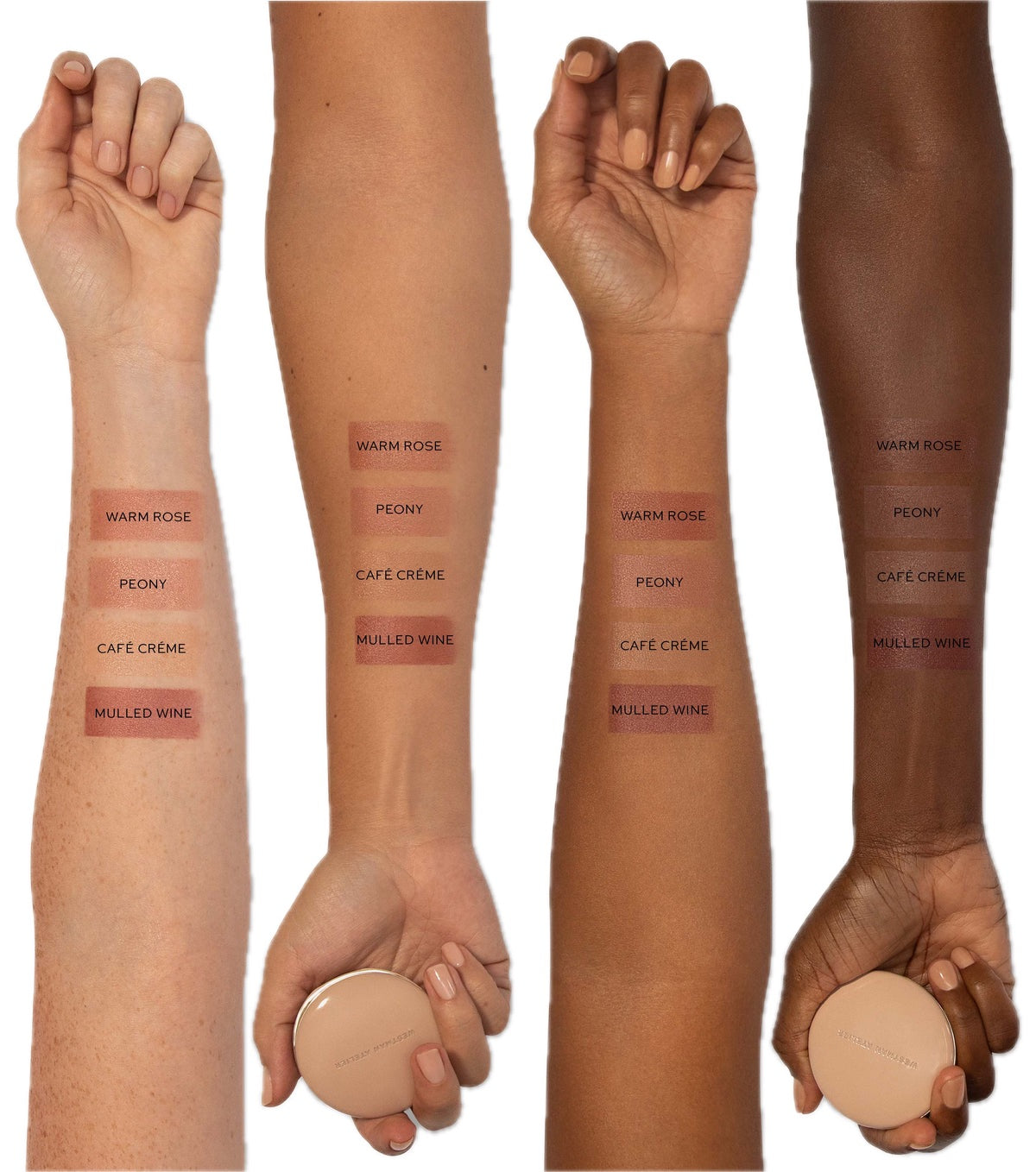Clean, customizable, everyday lip color. This intuitively easy palette contains four nude shades. Nourishing jojoba oil and volume-boosting peptides leave lips conditioned and plumped with a sheer, hydrated finish. Ultra-flattering nudes – in warm rose, peony, café crème and mulled wine – can be worn alone or custom mixed.
