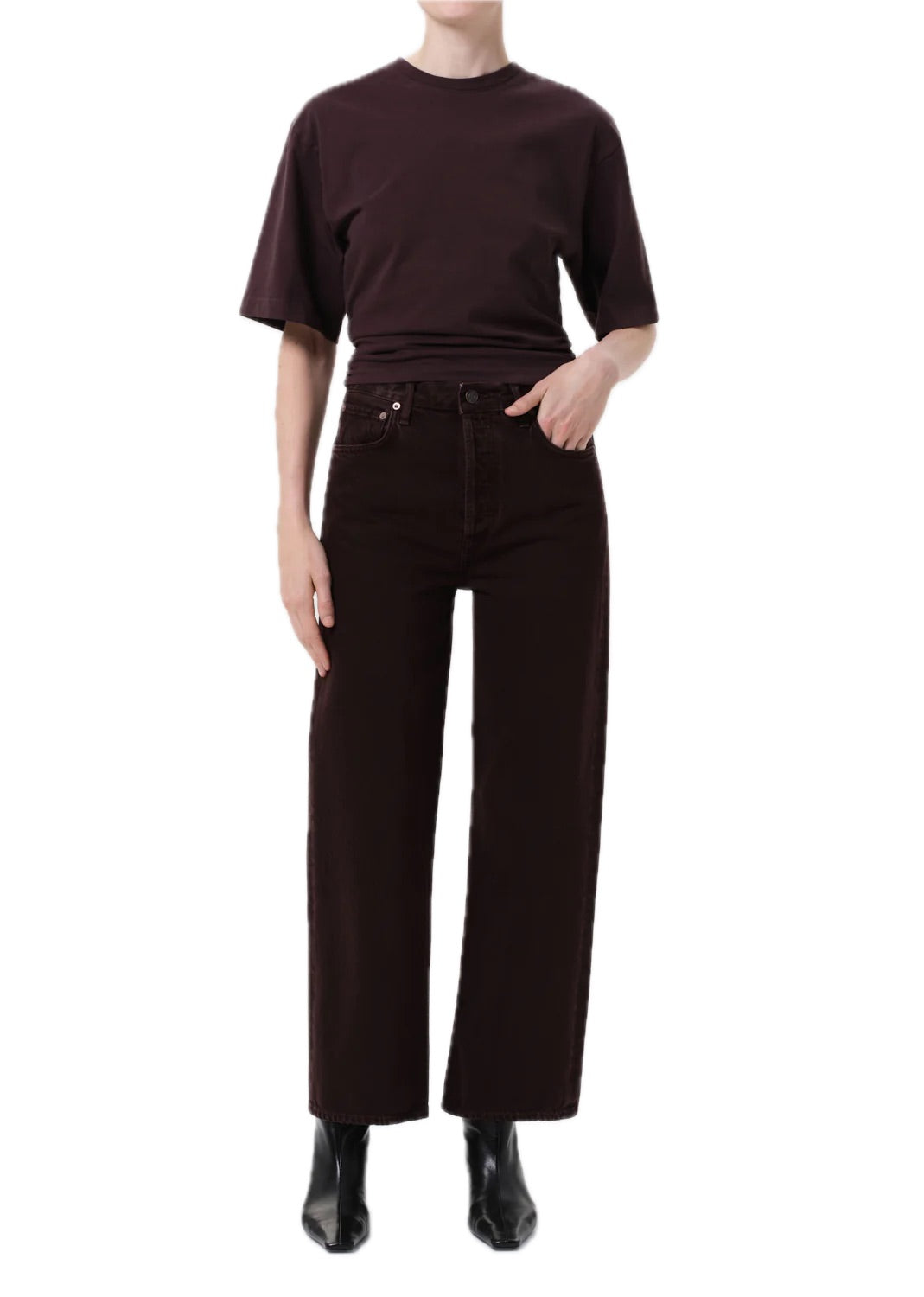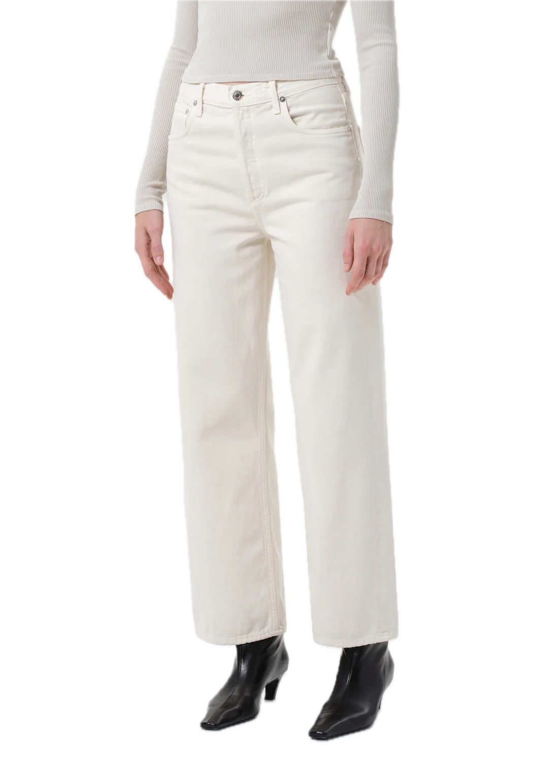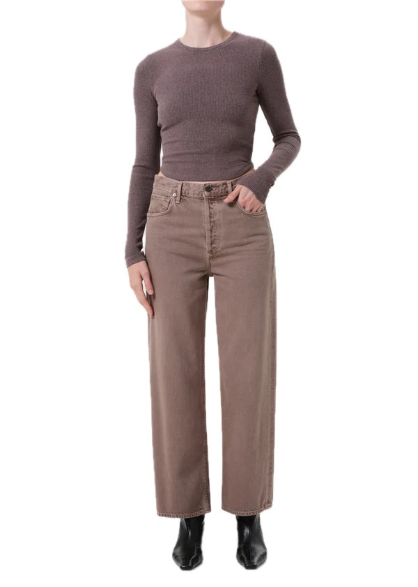 AGOLDE’s Ren Jean offers a clean, elevated take on the classic wide-leg silhouette. Crafted from 100% rigid, non-stretch regenerative cotton, these high-rise jeans feature a warm, light beige tone that adds a subtle yet sophisticated touch to your wardrobe. The cropped wide legs create a relaxed yet flattering fit, while the heavyweight denim with a soft hand ensures durable comfort for all-day wear. Style them with a fitted tee or chunky boots for an easy, polished look.