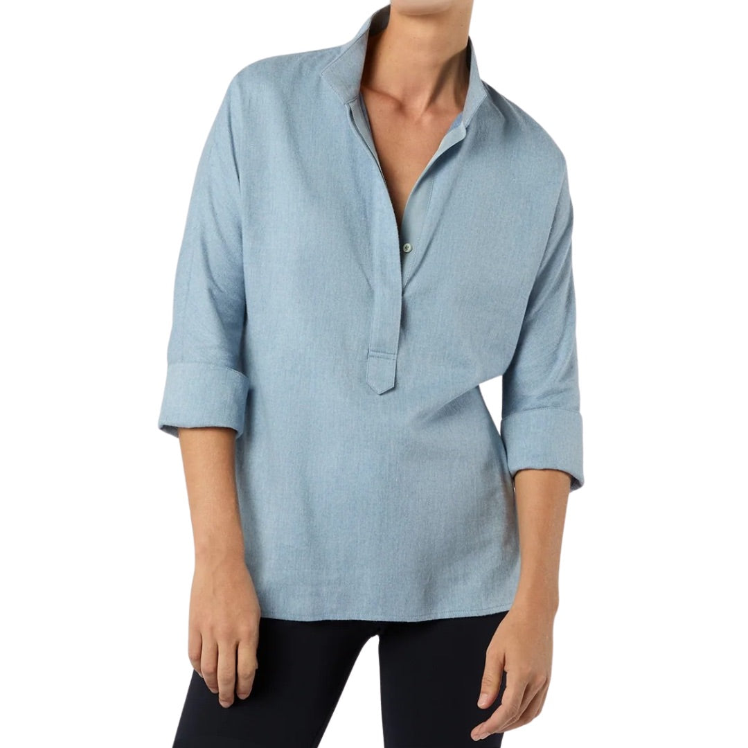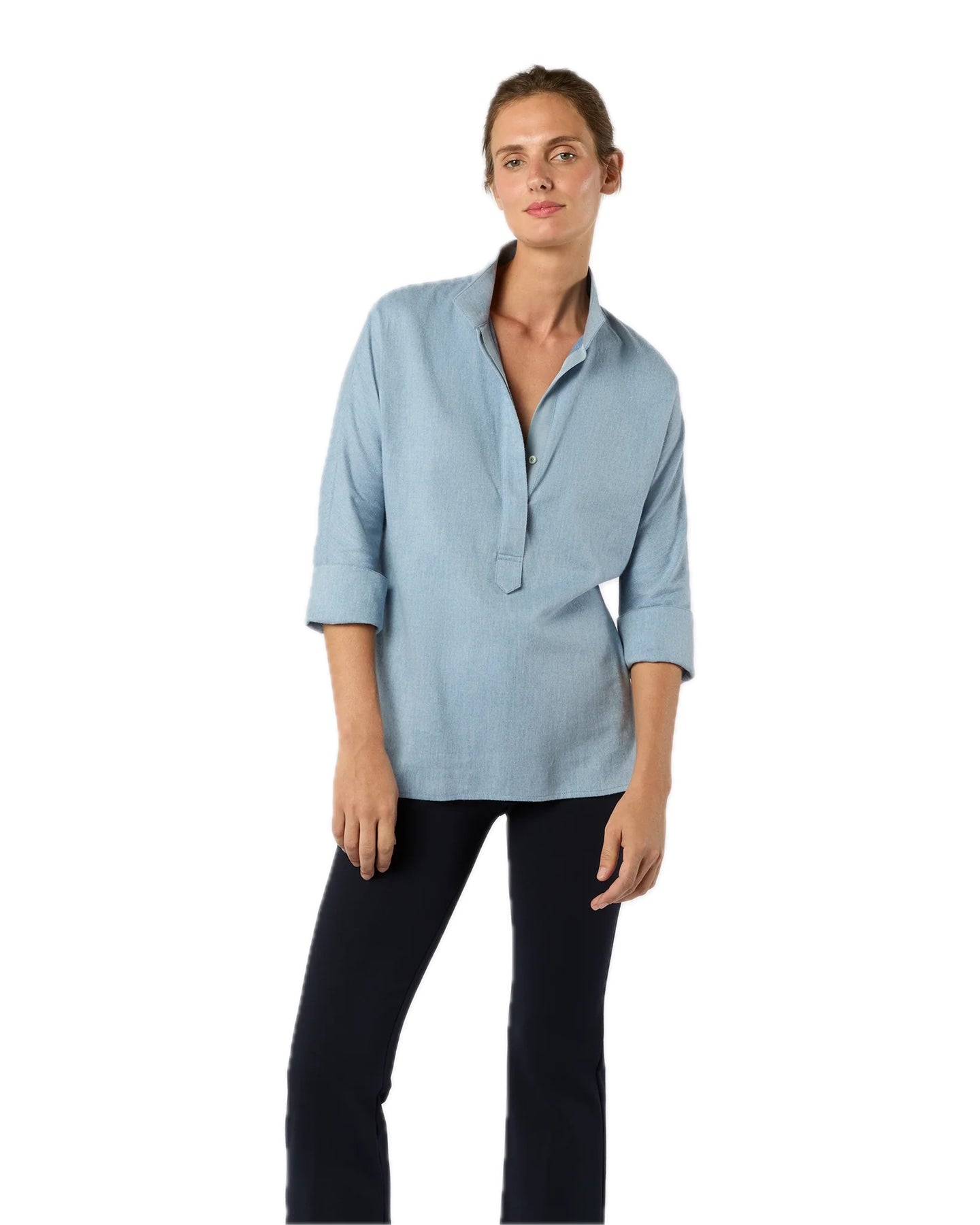 Like a popover... but somehow simultaneously easier and more polished. Win-win. This one's made up in the softest brushed twill from Italy, and finished with a flattering rounded hem.