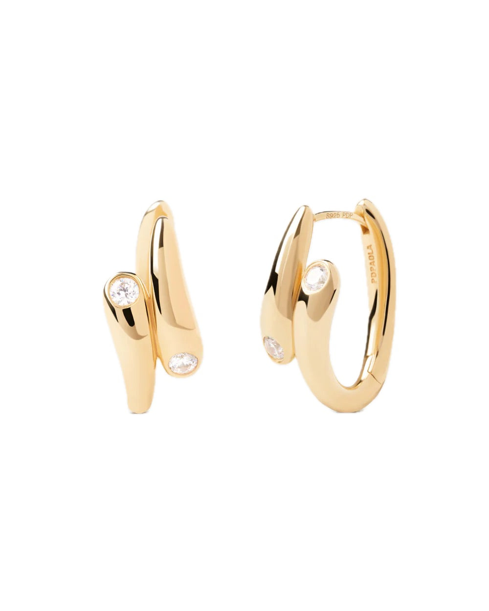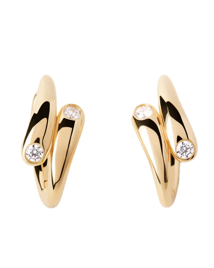 Asymmetric hoops with two overlapping drops accented with round white zirconia.